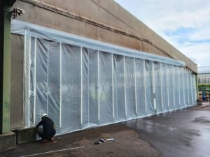 雨や風対策に最適です。物流現場や工場の資材置き場、荷捌きスペースなどあらゆる空間を快適にサポートします。