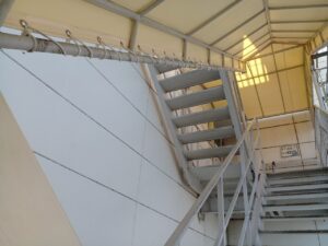 古くなった生地の交換で外からのイメージUP!階段テントの生地替えを行いました! │大阪府