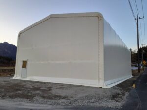 大雪にも耐えられます!テント倉庫の建築作業が完了しました! |長野県 2024.07.26 テント倉庫 建設の場所 長野県 種別 テント倉庫 サイズ W12×L24×H5 使用したテント生地 ウルトラマックス アイボリー オプション ハンガードア、ひさし 担当者のひとこと 長野県でテント倉庫の建築作業が完了いたしました!雪がたくさん降る地域には鉄骨の間隔を狭めています。専属の建築士が地域の積雪量から構造を計算しておりますので安心安全のテント倉庫になります。
