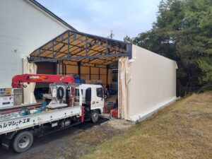 移動式テント倉庫(電動移動)施工事例|岐阜県揖斐郡大野町