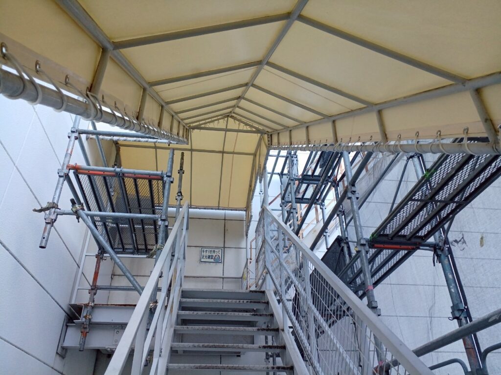 古くなった生地の交換で外からのイメージUP!階段テントの生地替えを行いました! │大阪府