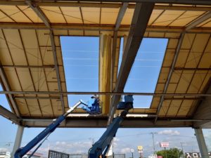 倉庫内の荷物はそのままで、テント倉庫の生地を張り替えました|栃木県足利市